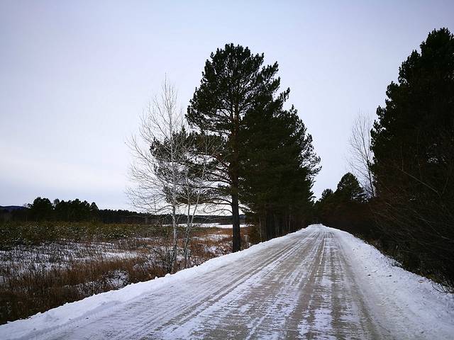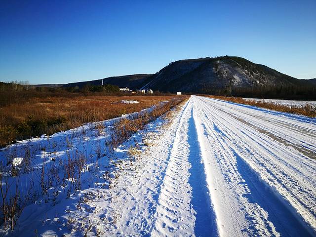 从漠河开到北极村大概一个半小时的车程,道路上已经全是白雪皑皑了,司机也挺能聊,他主要是跑包车生意的,三天一个环线那种,可以去北红村,还有其他一些景点。他的老婆在上海做生意,卖东北特产那种,他说他也去过上海,不过还是喜欢家乡。漠河的话从八月份就开始下雪了,冬天虽然漫长,不过他也习惯了。是啊,金窝银窝,比不上自己的狗窝嘛。