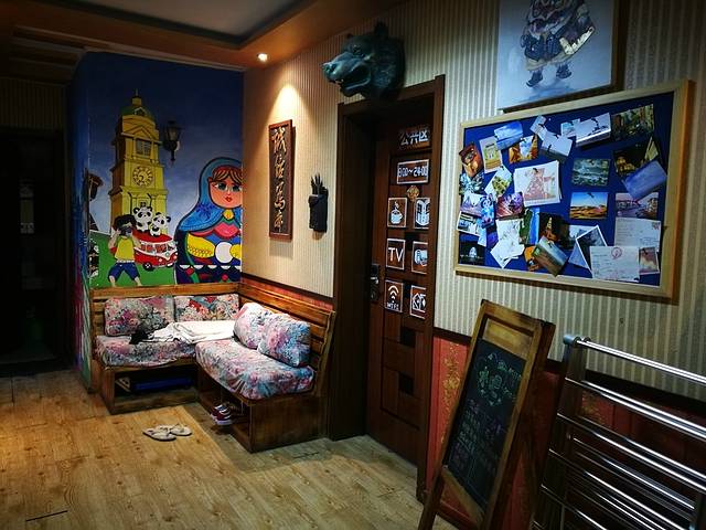一层的俄罗斯风情油画其实挺好看的,我也不是搞艺术的,所以看到五颜六色的就欢喜。二层好像是黑河历史介绍之类的吧,没啥印象了,只记得跟保安聊天来着。我说现在的黑龙江很好看啊,浮冰很漂亮,他说最好看的时候是开春,冰化的时候,冰块裂开,有一些会竖起来扎到水里,更立体,更漂亮。还有的时候会看到狍子被困在冰上,本来那狍子要过江,过了一半冰化了,它就被困在冰上了,真可怜;还有要吃冬天的红烧大马哈鱼,还有叉烧野猪肉,香地很,有意思。