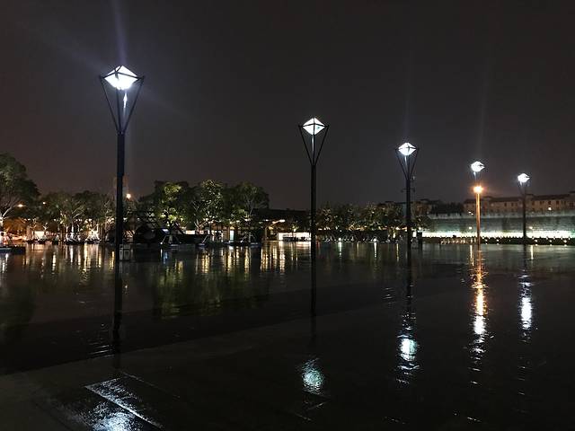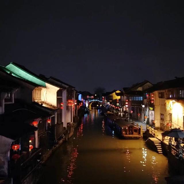 到苏州的时候是晚上八点多,下着中雨,不明方向的我拉着我的行李箱就从南站出了,一出站就傻眼了,只有诺大的广场根本没有马路,而且即使是火车站,人烟却很是稀少,根本不超过10个人😯,走了大概1km好不容易碰到一个行人,问了一下路,原来应该从北站出,后来才知道南站出来就是外城河,从北站出来人烟也稀少。苏州的夜晚与刚刚走过的魔都的晚上形成鲜明对比!