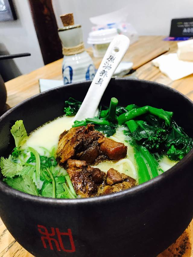 店里气氛很复古,音乐声起慢节奏的书院感觉就起来啦,汤面很鲜,面条又很顺,很滑,加上青菜新鲜,令整道面更加一道清新,肉质也很嫩,入味很足,稍微带甜,还有点姜的味道,吃后并没有肉丝绕嘴,很是细腻,嚼一口香菜那种浓浓的香菜味道加上面的清香简直不能太美味了