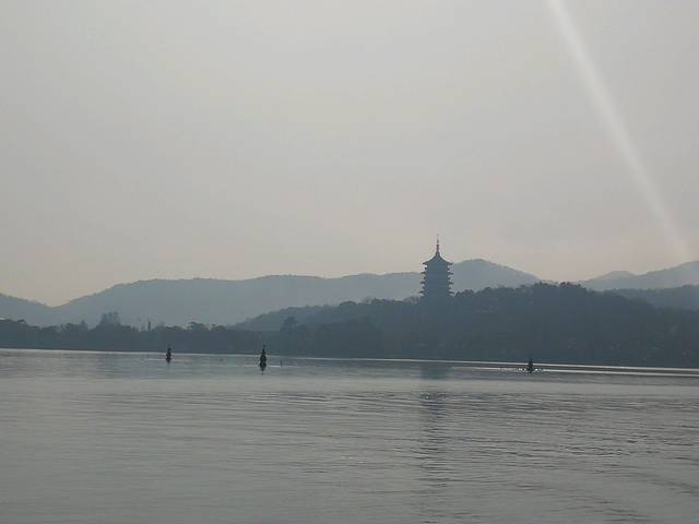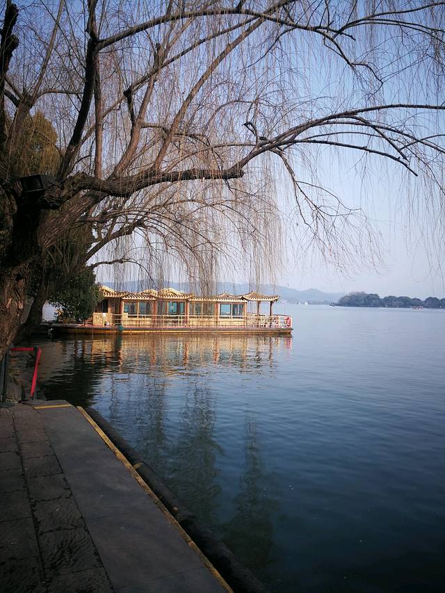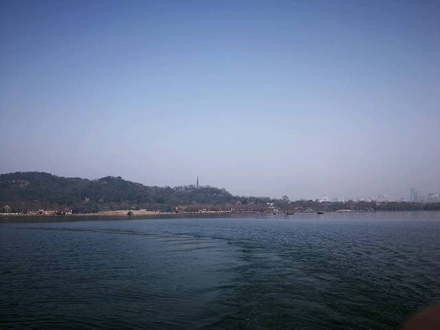 步行游览西湖十五公里的周长,对于带着孩子出行的我们,显然是不明智的选择。果断购票上铜制画舫在湖上观看这西湖的美景。早春二月的杭州西湖依然寒冷,湖面上春风吹来依然会感到刺骨的冷。渐渐地太阳露出了难得一见的笑容,身上的寒意顿时也驱散了很多。正是观看西湖美景的最佳时期,虽不能近距离触摸杭州的历史,远眺心心念念的美景也是不错的体验。