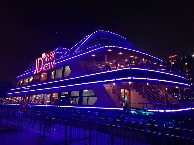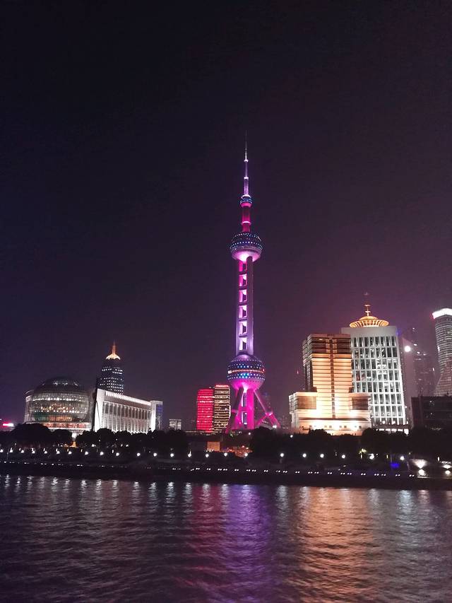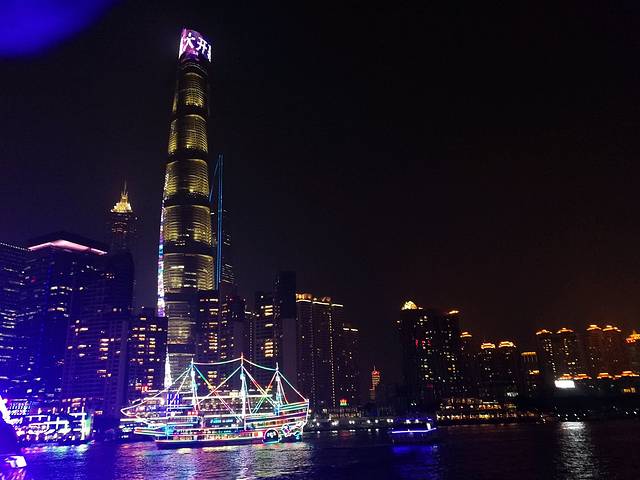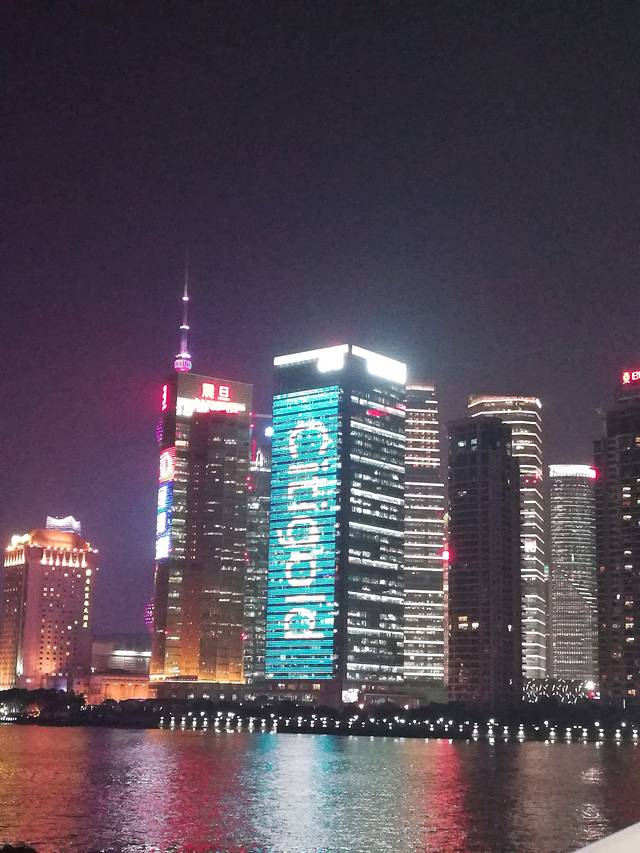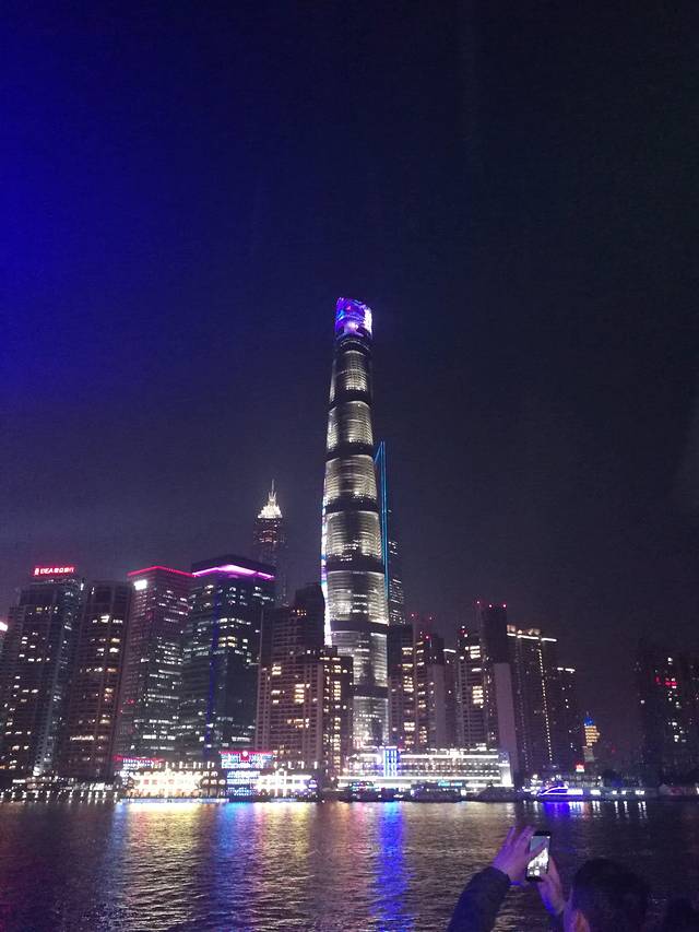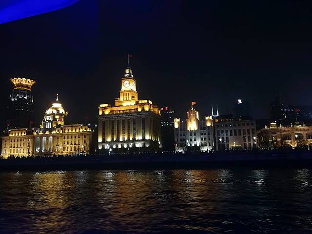 坐着游船欣赏黄浦江的景色。夜色渐渐降临,正是灯光登场献艺的时候。五彩斑斓的灯光将黄浦江畔的建筑物,披上了节日一般的盛装。游船在江中缓缓前行,两岸的建筑由于角度的变化以及灯光的变化,让整个画面都鲜活了起来。