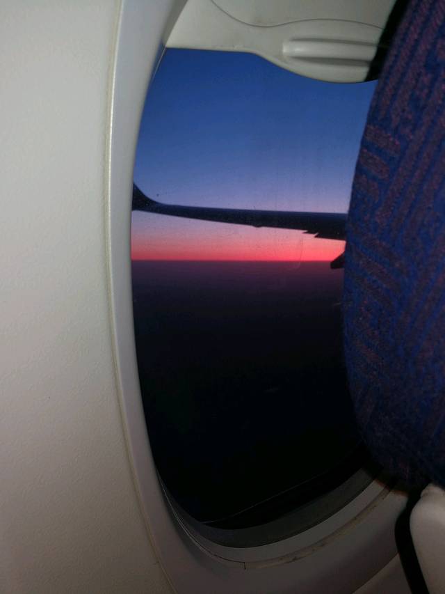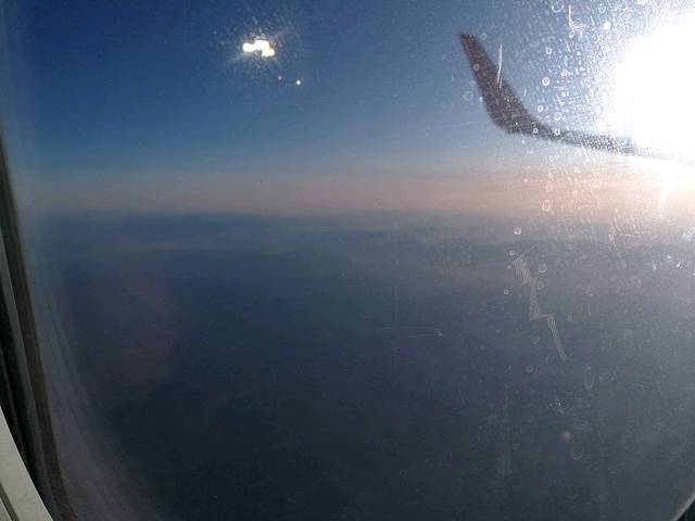 一路无话,到了阿镇机场才发现来的早了,距离机场开门还要等十五分钟。机场的航站楼矗立在寂静的旷野里,风格外的大。冻的人瑟瑟发抖,赶紧找一处相对避风的处所。好在时间不长,顺利进入机场等待换登机牌,托运行李,安检。一切都忙完后,已是六点二十分左右。此时离登机还有半小时左右的时间,空乘人员进入机舱进行起飞前的检查,而我们则利用短暂的时间补充一下空空的胃。