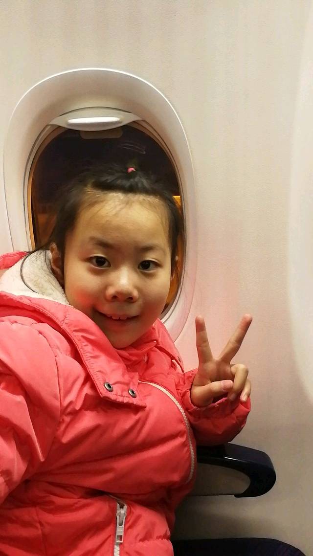 飞机准时开始向跑道滑行,对准起飞跑道后开始加速,发动机巨大的轰鸣声以及有次产生的推力,让第一次坐飞机的孩子感到紧张和刺激,终于飞机摆脱向下的重力,冲向了蓝天。孩子,抑制不住兴奋的心情。一路上不停的说着话,拍着照片。