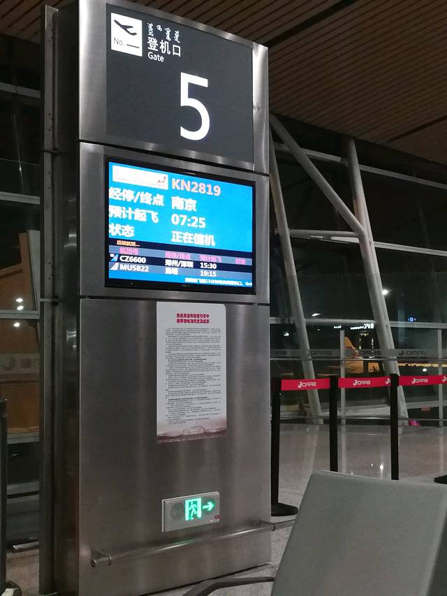早餐后,旅行车载着我们来到南京禄口国际机场,乘坐KN2820航班,返回鄂尔多斯国际机场。到达鄂尔多斯国际机场时是下午13:20,回包头的机场大巴要16:00才能出发,因此在机场耐心的等待除了机场大巴,我们回包头别无选择。