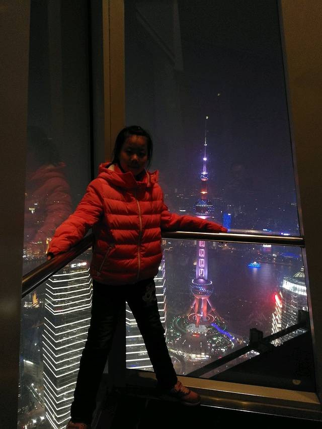 游完了水上看黄浦江夜景,我们又来到了“金茂大酒店”。这里有八十八层的高度,这里有速度最快的电梯(每秒九米)。这里曾是黄磊,黄渤,孙红雷,张艺兴等当红明星拍摄《极限挑战》的地方。从这里向下看,尤其是看东方明珠塔,又是另外的一种感受。远眺出去,黄浦江那一弯水,两侧的灯火辉煌。展示出上海国际都市所具有的独特魅力与姿态。虽然时间有些晚了,但扔不能减少游人们对黄浦江夜景的热情,虽然上海的夜风依旧那么的刺骨。