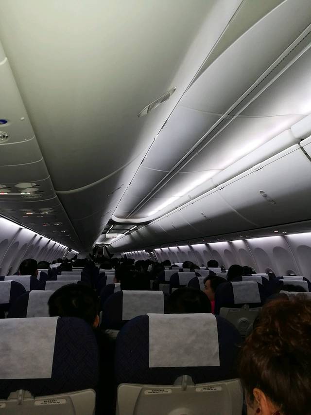 六点五十五分开始验票登机,由于换票的原因使得我和孩子并不在同一排座位。跟空乘人员简单沟通后,让我们坐在机尾最后一排座位。