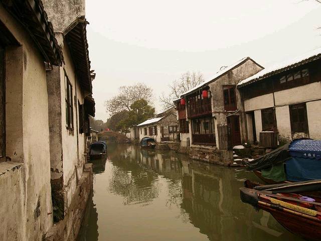 天灰灰的周庄古镇