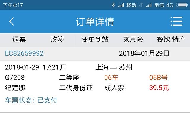 高铁:上海火车站-苏州站(17:21-17:55)