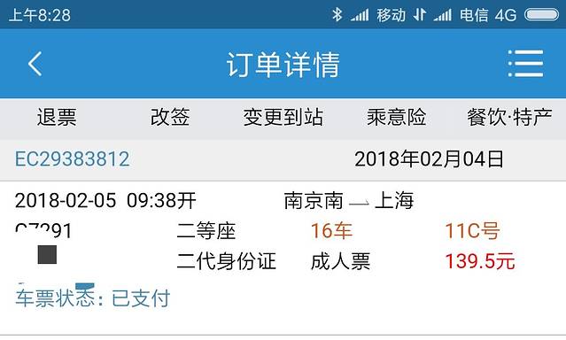 高铁:南京南站-上海火车站(139.5元)