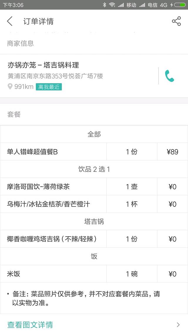 午餐:美团团购看到旅舍附近这家塔吉锅,觉得不错。就试试。