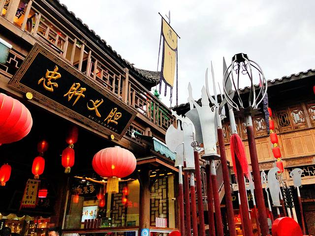 外面的匾额上写着英雄三国四个大字,这里也是以三国为主题打造的商业街,而街道内的美食,也得我来帮你排雷!