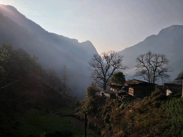 雾里村原叫"五里村",是丙中洛乡中最美丽的一个村子。它位于去秋那桶公路途中的怒江对岸的缓坡上。从新公路桥或朝红桥过怒江,然后右转走茶马古道约2公里即到村子。我们第二天清晨又去游了一次。