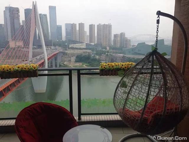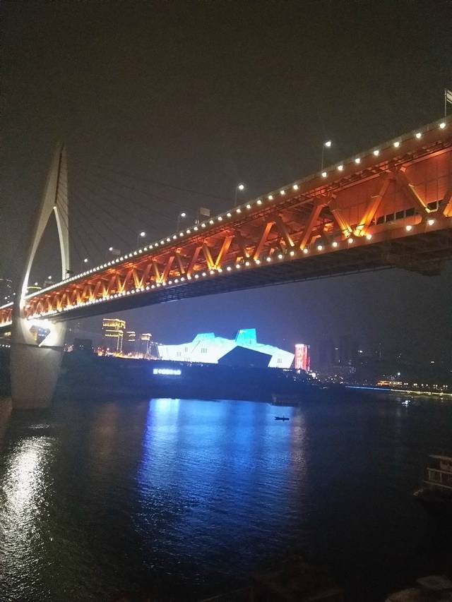 阳台,左面是千厮门大桥,右边重庆大剧院