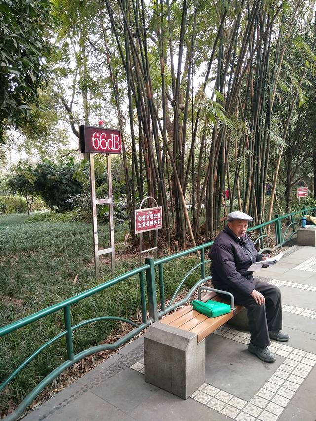 很温馨的噪音指示牌,文明广场舞。这个大爷在自顾自得联系唱歌呢,还挺好听