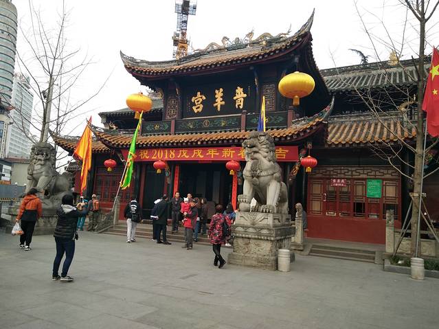 之后跟小伙伴们骑着座驾路过青羊宫,因为接近关门时间就没有进去,只在外面匆匆留影一张。青羊宫是一个香火很旺盛的道观。