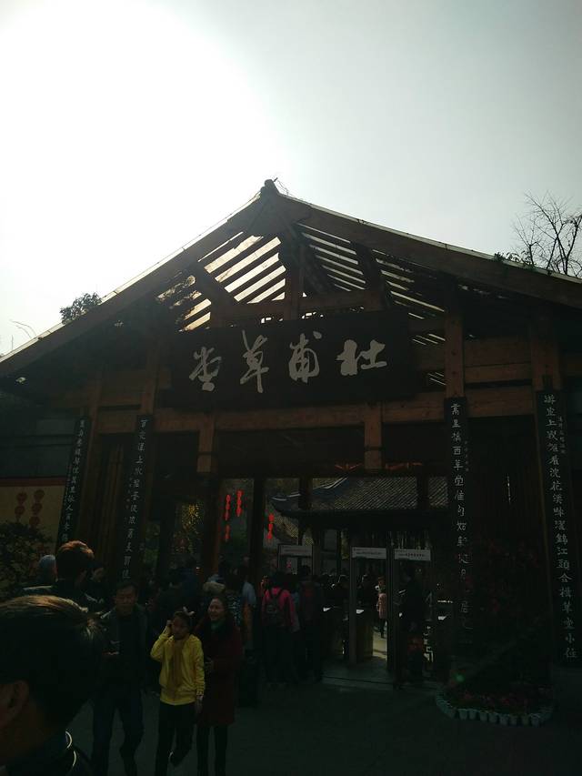鉴于前一天早起俩睡神需要补觉,今天我特许她们睡到自然醒,磨蹭到十点钟才出门。第一站去了杜甫草堂,据说这是杜甫失意时在成都的住所,在这里他留下了240多首诗词,是中国文学史上的圣地,有人评价“尽可以忽略了杜甫的生地与死地,但总不能忘记了成都的草堂”。而我对于草堂还有其他的感情,记得很早之前看过高圆圆主演的一部《好雨时节》,情节已模糊,但其中的爱情故事余温仍在,哪个女孩又会不期待呢?