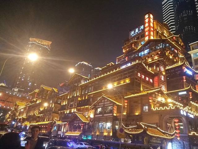 从大扶梯直接乘地铁回了青旅,本来打算不出来了,实在是累的不行,但是我这颗躁动不安的心啊还是打败了疲惫不堪的肉体,哈哈哈,休息了一小会就直接去了洪崖洞,不说了,直接上图,美不美大家自己感受吧!