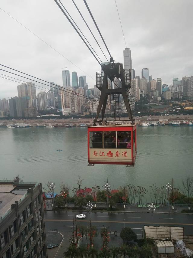 第二天的时候想去坐长江索道呢,路过一看,那队排的山路十八弯,老实儿的打道回府。今天早上雾蒙蒙,而且是工作日,早起去碰碰运气看看能不能坐上,很幸运的人不多,一会就进去了,本来是买的往返票30元,打算从新华路口过去到江对岸逛逛再回来去朝天门码头,结果临时起意到对岸后去了蒋介石官邸,回来上新街索道口又排起了长队,怕耽误了下午去成都的高铁,就决定坐地铁回去,很庆幸自己的当机立断,因为这趟地铁6号线是过长江大桥的奥。