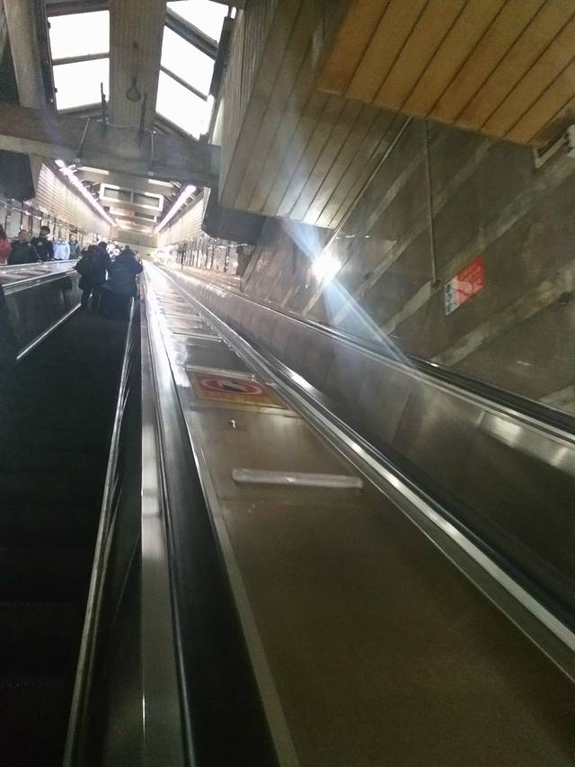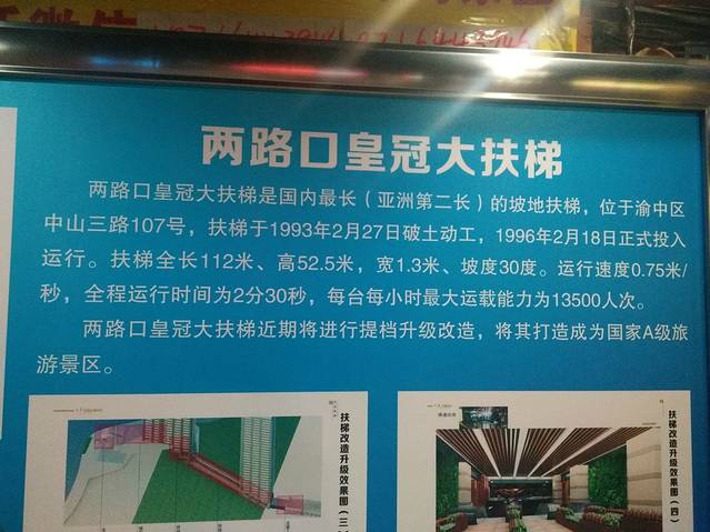 从李子坝出来就直奔皇冠大扶梯,在3号线两路口站下车就会有指示牌导向大扶梯,单程是2元。下行还好,因为重庆的地铁都还挺陡的,没有啥身体的不适,但上行的时候,我的个妈呀,一回头吓得我腿哆嗦,我是冒着生命危险拍了这张照片,现在想想都哆嗦。