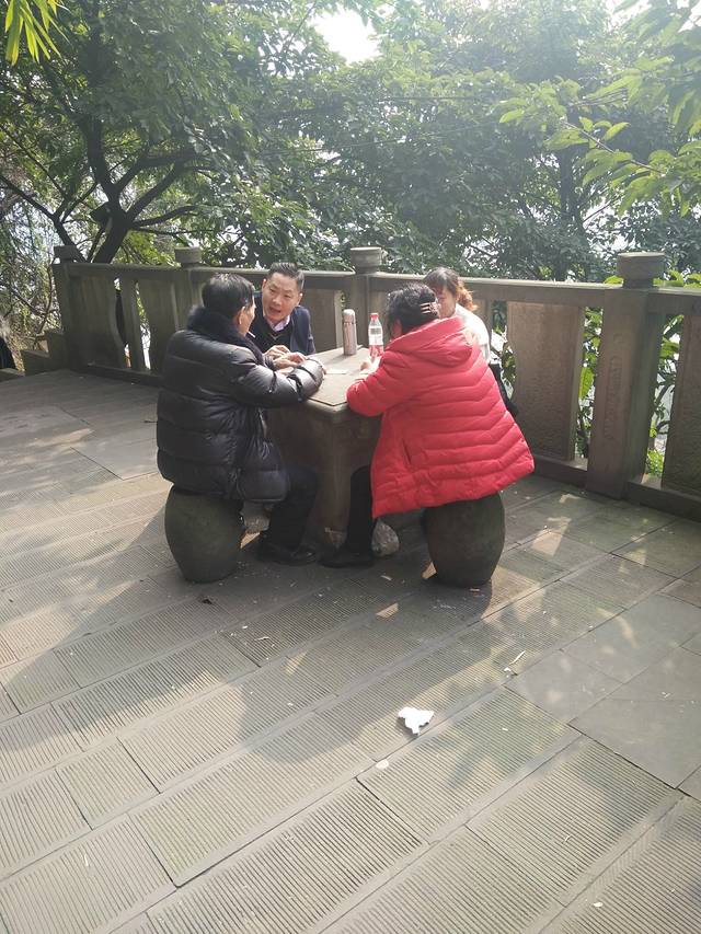 在半山腰处悠闲打牌的重庆人