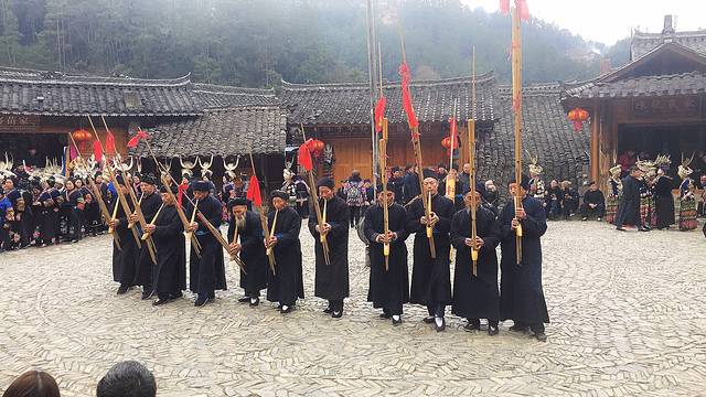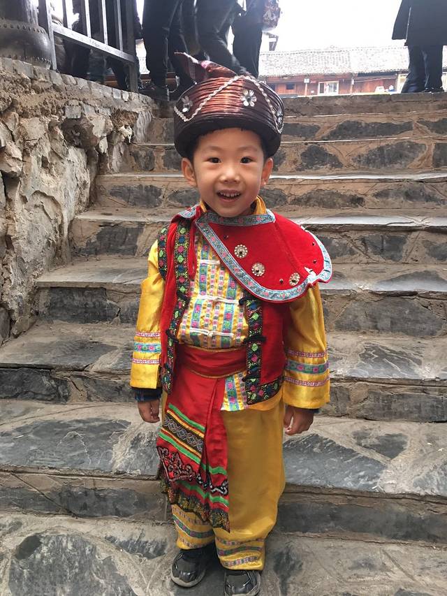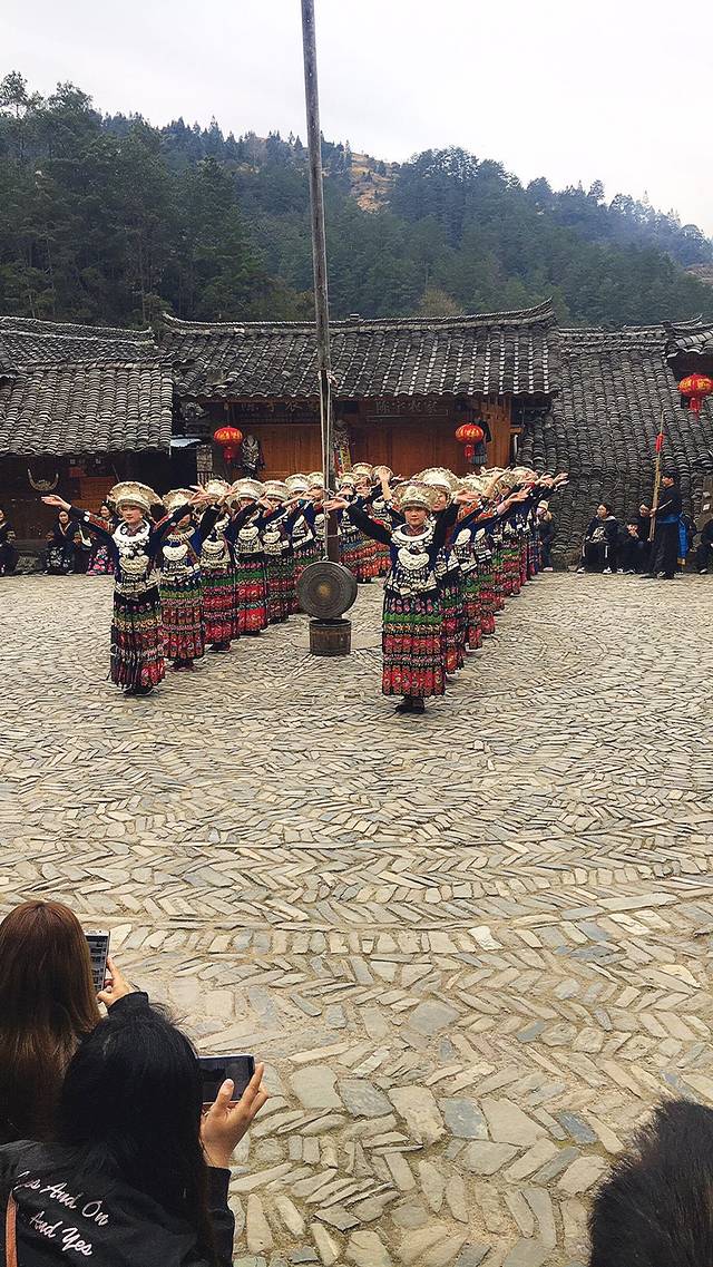 下午4点在寨子的中心广场有免费的歌舞表演,1个半小时的时间,表演还是挺精彩的,几乎全寨子的男女老少都会出动。从午饭时的店家处了解的,寨子里现在还保留这工分制这种分配方式,所有的村民都可以根据实际情况盛装参与演出、迎宾、敬酒等等这些欢迎游客,哪怕只是穿着全套的衣服站在那里凑数也可以,以此来换取不同的工分,月底结算现金。据说赶上旺季每人有1000多元的收入,对于这种经济落后的,随处可见家门口贴着精准扶贫户标牌的地区,这笔收入还是非常可观的。