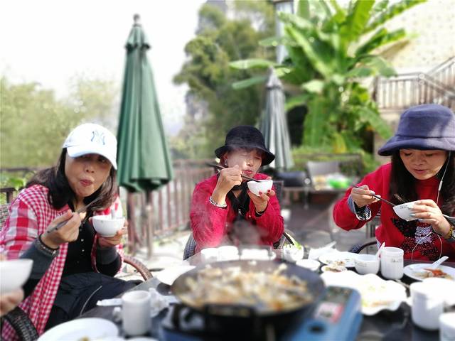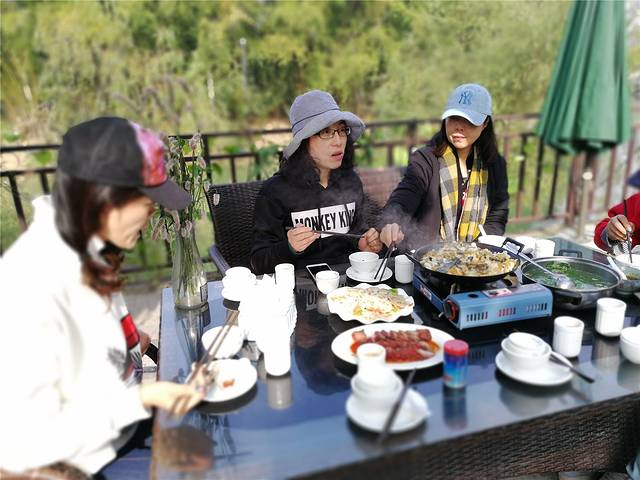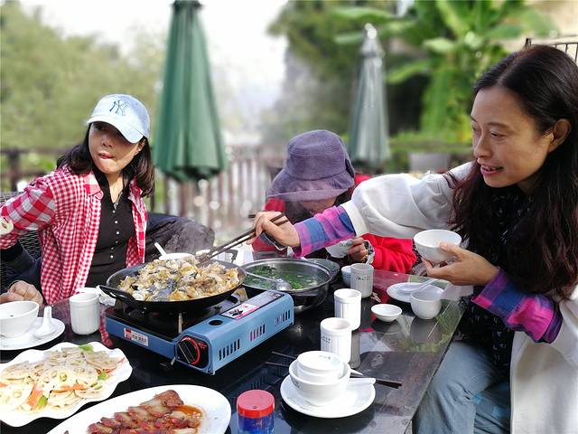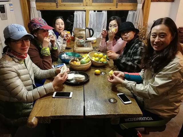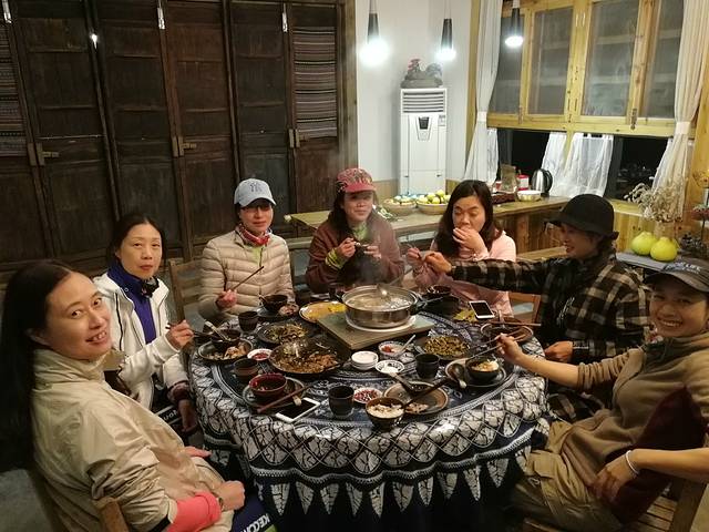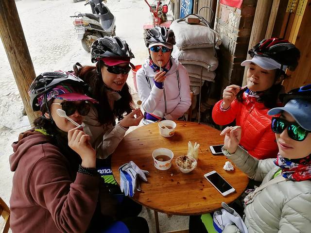 骑行了一天,饿得我们能生吞了这一桌。
