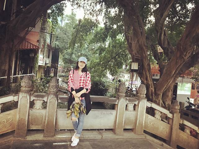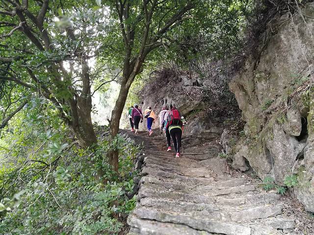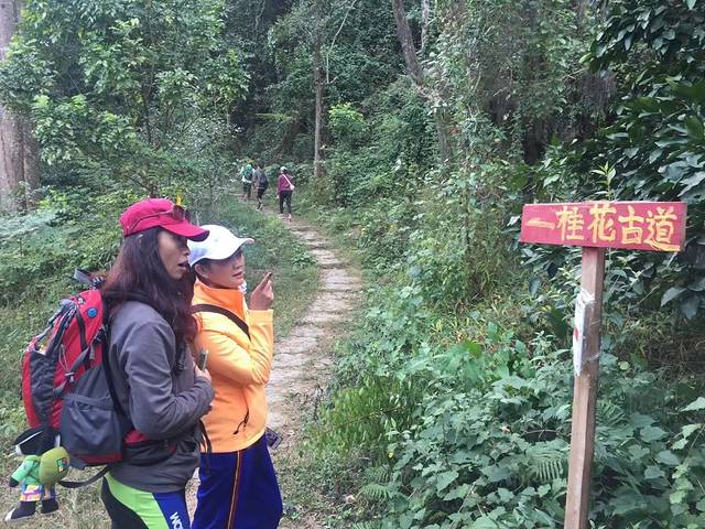 古道的石板阶缘山而建,路旁生长着老桂花树,只可惜我们错过了桂花开放的季节,想必,那时节的古道上,定是香气宜人。