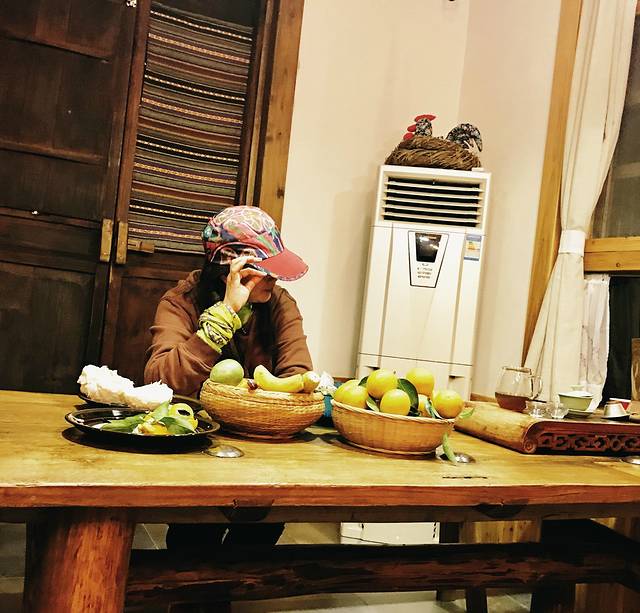 芳姐一见走廊里的古琴,就赶紧回屋换了身衣服,真是爱拍照的“小”姑娘啊
