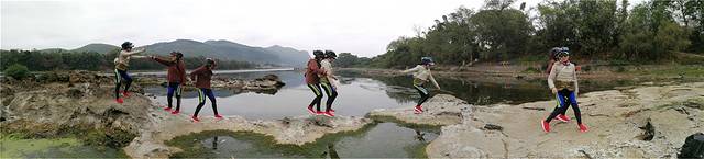 有随队后勤车的好处就是,骑行酷照和游江美照两不误