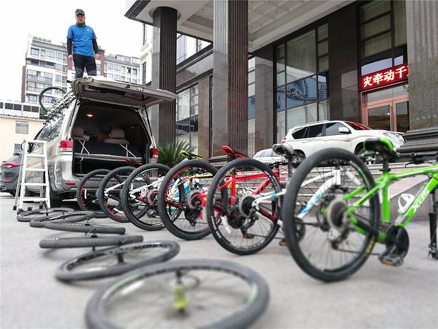一丁哥哥一大早就帮我们把车准备好了。这次的桂林行是4+2的方式,就是四轮+倆轮,开车躲开国道这类无聊又危险的道路,进到山里或是风景好、路况好的地方,再开始骑行。既节约时间,又能享受到旅途中的精华段。