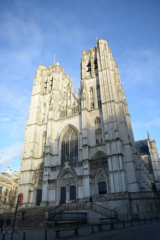 去往布鲁塞尔大广场的路上我们还不期而遇了圣米歇尔圣古都勒大教堂。它从1017年投下第一块基石到1080年落成,持续了60多个春秋。教堂分祭坛、耳堂和大殿三个部分。由于高低不平的山顶无法提供宽阔平整的地基,人们便沿山坡修筑了几处建筑使教堂修建在同一个水平面上。大教堂呈十字形,而祭台、耳堂和大殿下的墓穴或祈祷间实际上也成了罗马式建筑工艺的杰作。教堂的正面是建有三扇拱门的大门廊,从门前的平台上即可俯瞰大海。教堂集罗马与哥特建筑艺术于一身,大殿为典型的罗马风格,其穹顶的开间多达7道,两侧的拱门式长廊之上的楼廊砌有罗马式的拱窗,以保证教堂的通风与采光。与大殿形成鲜明对照的,是那哥特式的三层圆形祭坛,祭坛周围的回廊不带祈祷室。这种教堂的风格在诺曼底一带很有代表性,曾经风靡一时。这是比利时最重要的教堂,13世纪时经过重新翻修,教堂变为哥特式风格。由于教堂外面没有太多的装饰,它保留了哥特式建筑的简单线条性,看上去修长, 风格醒目。教堂经常会有活动。