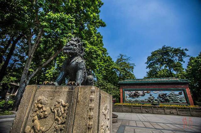 大型陶瓷壁画“双龙壁”前的狮子何其威武,精致的雕塑花纹也是祖庙最有看头的地方。