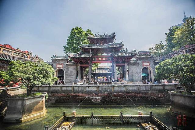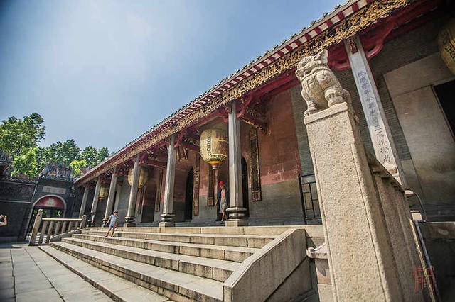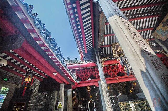 大修后的祖庙保留了浓烈的清朝风格,红墙壁砖在午后阳光的照耀下显得如此晃眼,虽然将近中秋的时节,佛山白天的气温却达到了三十度,即便如此每天来参观的人也络绎不绝