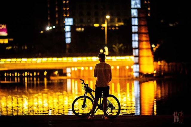 时常见到有骑行而来的人们,安静的站在河边,看着灯火通明的夜色沉思。