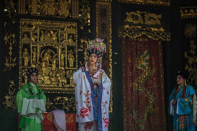 进入祖庙的大门没多久,我就被佛山的粤剧所吸引,闻声赶来,已经有不少游客早已坐在戏台下静静地观赏了。