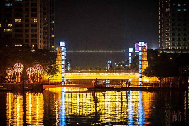 晚餐过后夜幕开始慢慢笼罩了整个佛山城,信步走在南海的千灯湖公园,饭后散步的游人也渐渐多了起来。