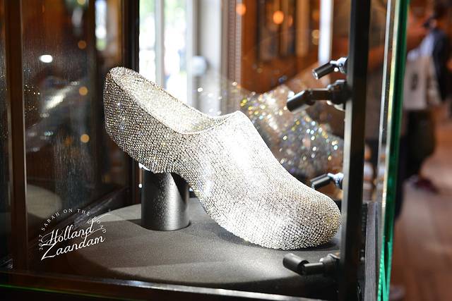 走进木鞋博物馆,窄窄的通道两旁是各式各样的木鞋,有漆绘的,有木雕的,有钻石的,还有画成脚丫和汽车的。
