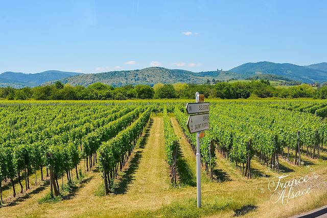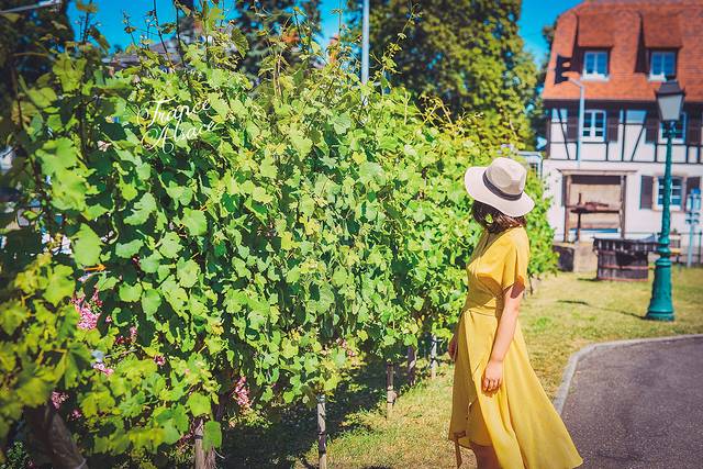 又一个艳阳天,大巴行驶在法国著名的葡萄酒之路上,La Route des Vins D'Alsace这条绵延了近两百公里的葡萄酒之路始于1953年,一路分布着大大小小的葡萄田园和酒庄,其中最知名的葡萄酒当属雷司令和琼瑶浆。