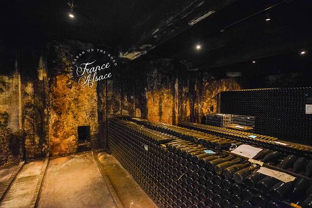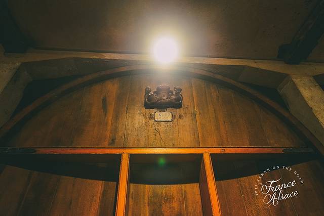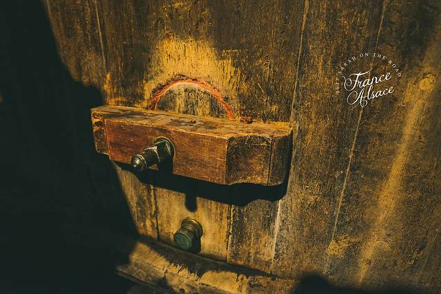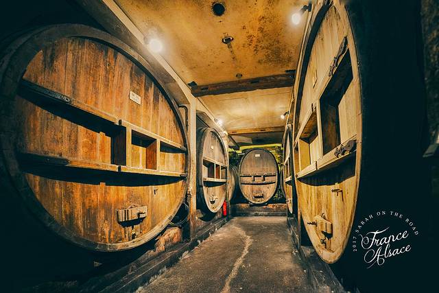 夏日的阿尔萨斯已经37度了,但酒窖里非常凉快,女孩先带领我们来到地下的酒窖,巨大的橡木桶有两个人那么高,最深处的木桶颜色比其他橡木桶都深,这是年代最久远的(两百年还是四百年,哎呀,脑子太差回来给忘了,下次要记笔记了)