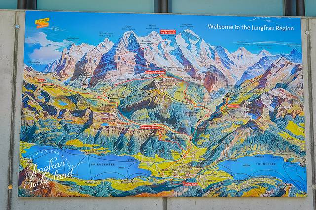 海拔4158米的少女峰位于因特拉肯,因特拉肯的意思是两湖之间,这两湖是图恩湖(Lake Thun)和布里恩茨湖。