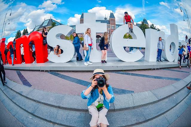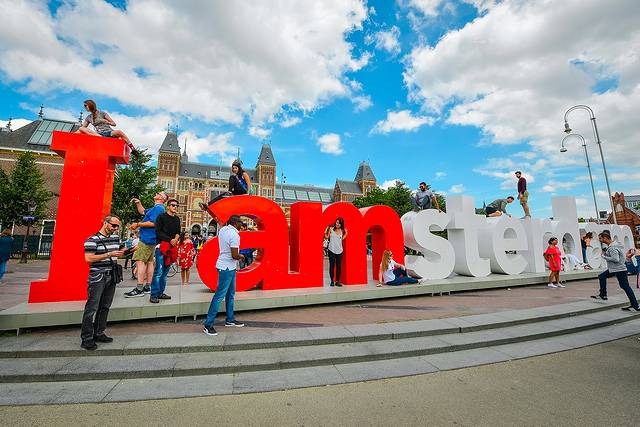 阿姆斯特丹的地标“I AMSTERDAM”,永远有无数的游客爬到字母,要想拍到人少,只能一大早来。