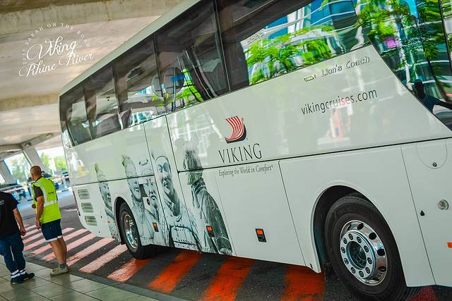在确认了名字后,带着我们去拿行李。出机场后,一辆大巴来接我们,大巴超好识别印着兵马俑的图案,哈哈,考虑的真全面,据说这维京的老板太太是中国人,当太太带着父母来欧洲玩时,维京老板发现老丈人丈母娘玩的不开心,吃嘛吃不惯,语言又不同,特别开了针对中国游客的游轮路线,莱茵河和多瑙河,这次我们游玩的是莱茵河路线。