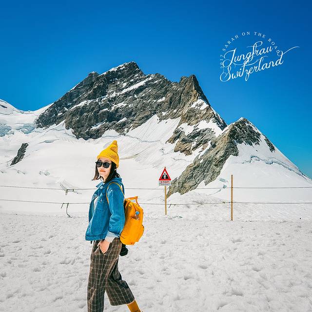 另一处的室外平台,是可以直接踩在雪山上的,背后就是少女峰。
