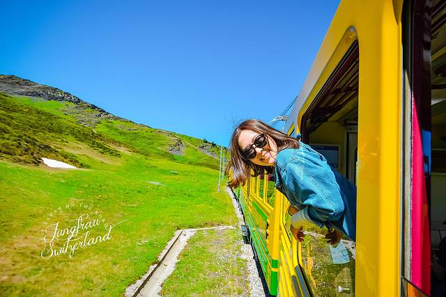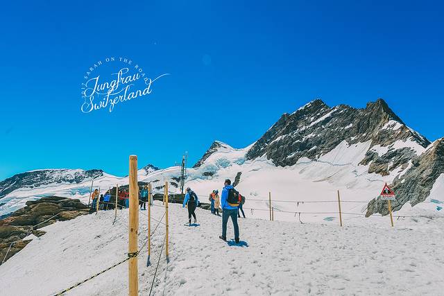少女峰是我全程最期待的一站,特别期待高山小火车!少女峰的蓝天雪山小火车已经是瑞士的一张名片。运气很好,去少女峰的这天晴空万里。
