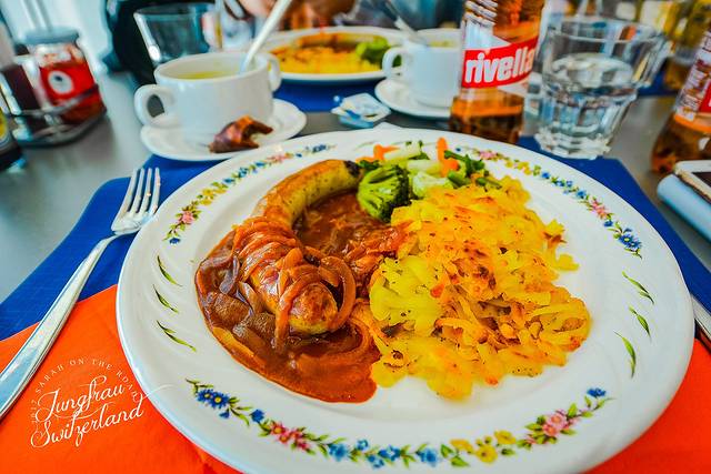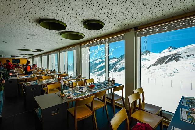 坐着小火车到达山顶,这里是全欧洲海拔最高的火车站了,先去餐厅享用午餐,这里风景非常好,雪山就在旁边,不过做在窗边还是很刺眼的。
