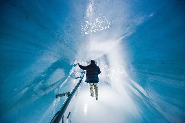 接下里就到了少女峰的冰宫里,这里还挺冷的,不过非常漂亮,厚厚的冰层透着蓝色,地上没有想象那么滑,其实还挺好走的。