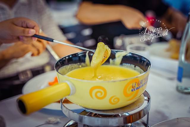 芝士火锅是瑞士最著名的一道国菜,用白葡萄酒将芝士融化,裹住烤硬的小面包块一起食用。