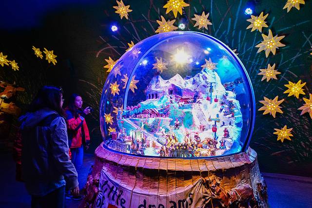 经过这雪花般的隧道,来到这个大水晶球前,水晶球纪念着高山火车的建造的不易。