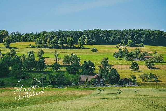 从巴塞尔到琉森,一路的田园风光,小房子很有瑞士风格,斜斜的红砖屋顶,夏季的瑞士似乎就被蓝和绿包围了。